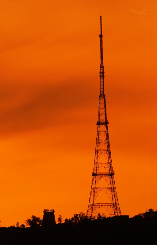 Old Gods vs New Gods: Neil Gaiman's American Gods talks about how old gods are losing their power as people spend less time praying to them and how new gods such as the media and technology overpower them. A wireless tower towers over the Chamundi temple tower, Mysore, India by a long way, symbolising the shift in power.