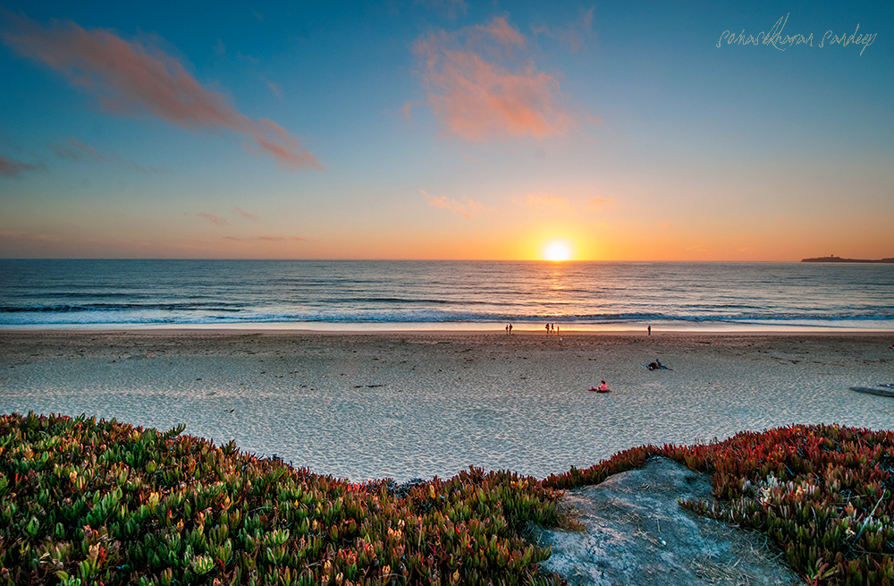 Half moon bay is a popular spot near Bay area, California. The evening air is often biting cold, but that doesn't dissuade people who yearn for a break from the hustle of the silicon valley from taking the short drive and enjoy a sun set here.