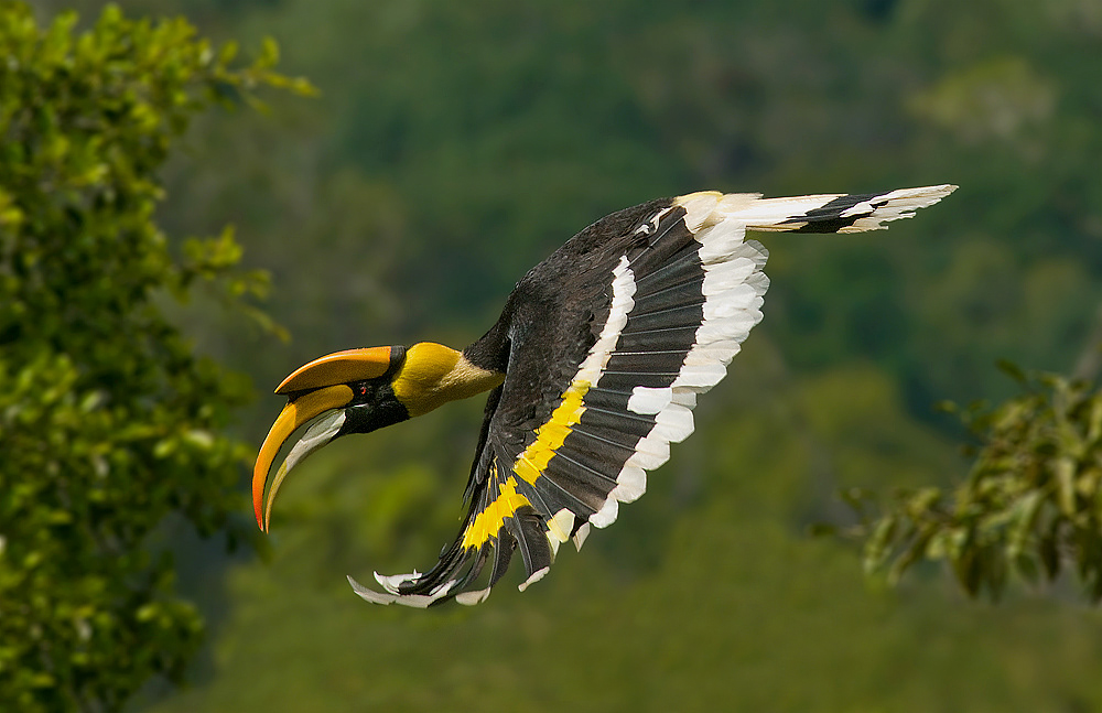 The Great Hornbill is called "Mala Muzhakki" in Malayalam: Meaning, the one who makes the mountains reverberate with his call. The bird's casque causes its booming call that inspired the name. Idukki, India